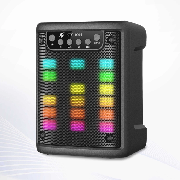 اسپیکر قابل حمل با وزن 650 گرم دارای یک عدد باند 3 اینچ و توان خروجی 10 وات همراه با رقص نور طرح اکولایزر RGB ، قابلیت اتصال بلوتوث ، فلش و مموری و قابلیت اتصال میکروفن سیمی را دارد.